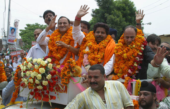 roadsides, with a single tap catering to hundreds of households.![]() ![]() July 16, 2009 Jammu: Congress (I) legislators Raman Bhalla and GM Saroori who were inducted in Omar Abdullah Cabinet as ministers’ recently on a thanksgiving rally on their arrival in Jammu. ![]() ![]() ![]() JULY 18, 2009 - JAMMU: Director General of Border Security Force M L Kumawat addressing a press conference at BSF headquarter . ![]() ![]() July 20, 2009 Jammu: Activists of BJP staged protest demonstration against the decision to establish Central University in Srinagar instead of Jammu by the Cong-NC coalition government and burnt an effigy of J&K Chief Minister Omar Abdullah ![]() ![]() ![]() |