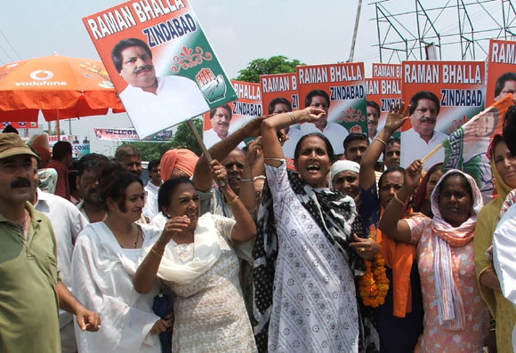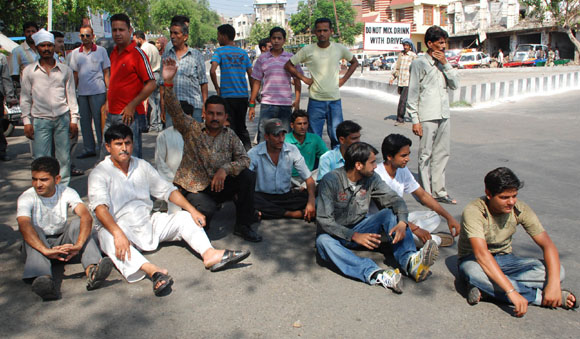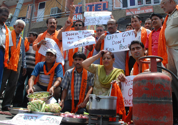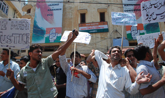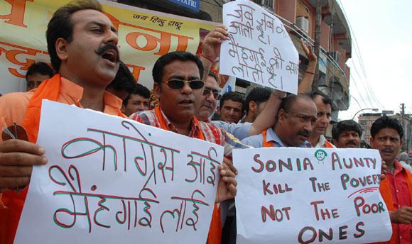 15, 2009 Jammu: Congress Workers came out on streets openly protesting