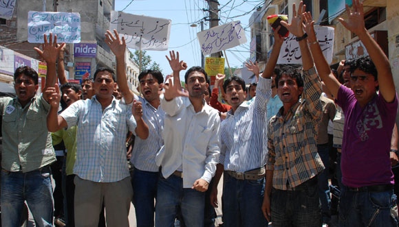 ![]() ![]() ![]() July 21, 2009 Jammu: Kashmiri Pandits staged a massive protest demonstration against the government for failing to curb acute water sacristy in the city while temperature shows no signs of decline in Jammu . ![]() ![]() ![]() ![]() |