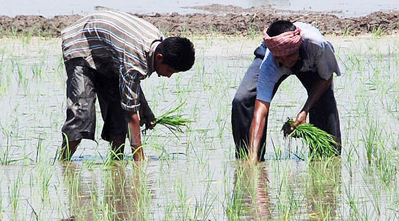 unethical and demanding its revocation in Jammu.![]() ![]() ![]() July 4, 2009 Jammu: Hamid Ansari, Vice President of India who is on a visit to forward Border Outposts of Jammu Sector saluting alongwith the senior army officers at the memorial of Brig Mohd Usman at Jhangar, in Noushera, 137 Kms from Jammu ![]() ![]() ![]() ![]() July 7, 2009 Jammu: Farmers plant saplings in their paddy field on the outskirts of Jammu will boost spending on irrigation and roll out more jobs and loans for farmers to spur the rural economy and lift farm sector growth to 4 percent, Finance Minister Pranab Mukherjee said on Tuesday . ![]() ![]() ![]()