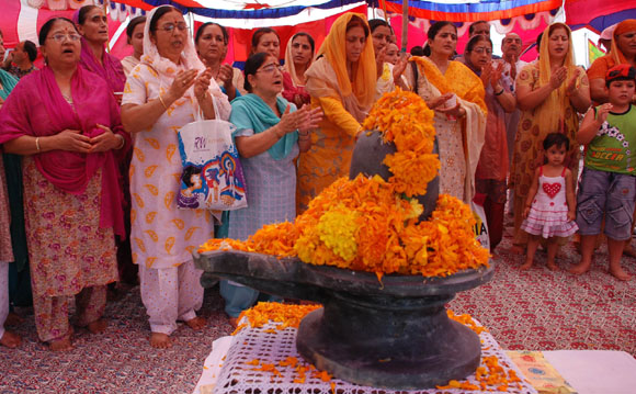 7, 2009 Jammu: Exclusive shots of a rare chiselled Shiv Lingam with a
