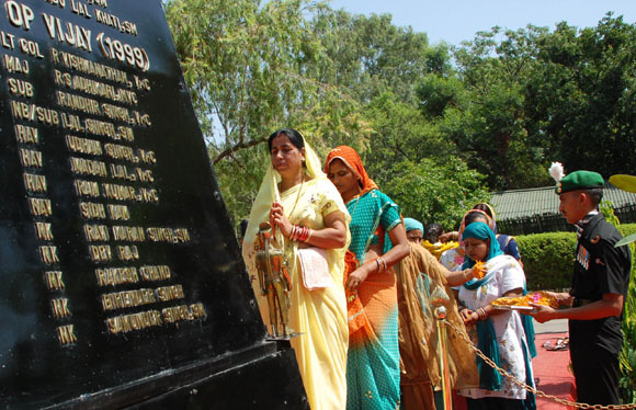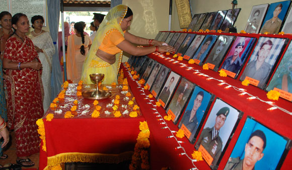 4, 2009 Jammu: Family members of the martyrs of 18 Grenadiers laying