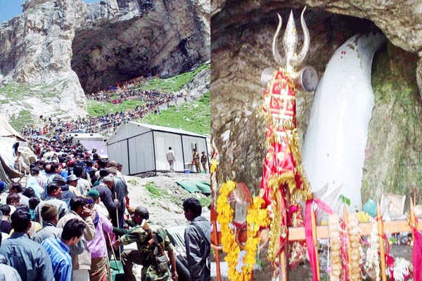 Almost every part of India is known for many a sacred shrine, but the Amarnath Cave embossed in the snowy valley of Kashmir reveals the unique sight of natural Ice Linga of Lord Shiva perched on a glacial gorge which waxes and wanes with the movements of the moon. According to a common belief, it reaches the maximum height on Purnima in the month of Shravan (July-August), when Shiva is supposed to have divulged to Parvati the secret of salvation. On this day thousands of pilgrims negotiating the most difficult ridges arrive at the holy cave for Dharshan of the Lord. The pilgrimage of thousands of devotees to the far way cave of Amarnath, nestled in a glacial gorge of the western Himalayas, through some of the most charming scenery in the world, is fascinating in the extreme. One is stuck with wonder at the quiet and ordinary way in which a canvas town springs up with incredible rapidity of colours and of all shapes and sixes and broad streets running through the middle, and all vanishing as quickly at the break of dawn when the whole army of pilgrimages set out on the march again. The glow of countless cooking fires, the ashen smeared Sadhus under the canopy of discussing or meditating before the Dhunis, the Sannyasins of all orders in various garbs, the men and women with children, from all parts and their devote faces, the torches shimmering at nightfall, the blowing of conch-shells and horns, the singing of hymns and prayers in chorus………. all these are most impressive, and convey an idea of mastering passion of the race for religion.