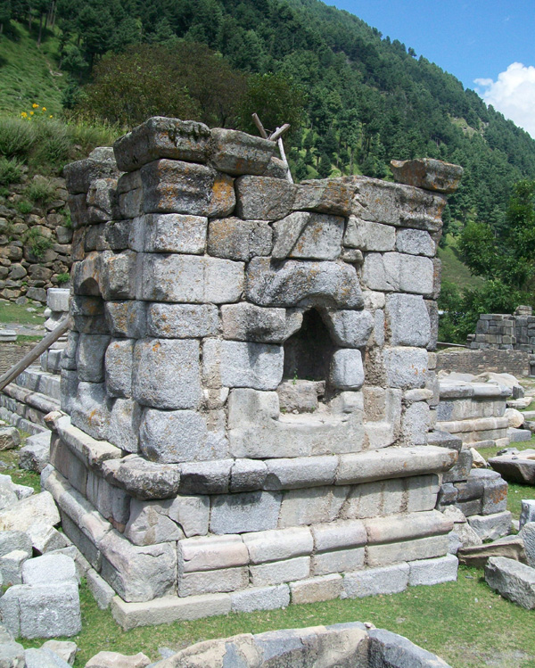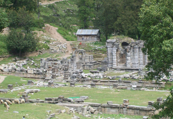 | Neelmata repeatedly makes mention of Bhuteshwara Teertha or Sodar Naag or Sodar Teertha. Kalhana too makes repeated mention of Sodar Naag or Naran Nag in Rajtarangini. To quote Taranga I canto 107 and 347, Taranga II canto 123 and 139 and Taranga IV canto 189, he too calls it Bhuteshwara or Bhutesha and Sodar Teertha. Again the spring inside this temple complex is referred to as Sodar Naag by him. Kalhana makes it clear that this temple complex was patronized by various kings of Kashmir. King Jaluka (137 BC) erected a stone temple at this site dedicated to Shiva Bhutesha. Kalhana adds that King Jayendra (61 BC) would come to worship Shiva Bhutesha at this temple complex. King Lalitaditya (713-735 AD) donated a good sum of money to this shrine after one of his victory expeditions. King Avantivarman (855-883 AD) built a stone pedestal with silver conduit at this shrine for bathing of sacred images. Kalhan’s family was also devoted to this Teertha. His father Canpaka paid frequent visits to this shrine. Kalhana’s uncle Kanka also happened to be a frequent visitor to this shrine. The Teertha had a large number of Purohits who were paid handsome salaries from the endowments created for the shrine. As per Kalhana, the treasury of this shrine was plundered by King Sangramraja of Kashmir (1003-28 AD) According to Lawrence, “in antiquity these ruins are supposed to rank next after those of Bumzu and Payech”. According to the scriptures, Naran Nag, in earlier times, was pilgrimages centre and was famous as Sodara Tirtha. With the passage of time the shrine must have lost its importance but it is said that pilgrims to Gangabal Tirtha continued to pay obeisance at this pilgrimage centre. This ancient shrine has a holy spring called Naran Nag, which has given the name Naran Nag to the locality. In the vicinity of the holy spring are found ruins of the temples, which have got buried almost completely and on the top of the largest, a pine tree has taken the roots. A footpath by the side of holy springs leads on to the height of Harmukh and to the height of Harmukh and to the mountain-lake Gangabal, a celebrated place of pilgrimage, 5,000 feet further up at the foot of Harmukh Mountain. It is said that Raja Narendraditya built the small temples. According to Lawrence, “It is probable that the Wangath temples were erected at different times by the returning pilgrims as votive offering after successful accomplishment of the hazardous ascent”. The surprising aspect about the temples is the fact that the material with which the stones of the temple have been joined is not known. Major Cole places the time of these temples as 1 AD. The structure of two clusters with six and eleven temples even though now in ruins are by and large a perfect example of Vastu Shastra as the back of these temples is towards the green hills which is treated as the most auspicious on account of Vastu Shastra philosophy. Each of the temple was built by perfect grafting of Devri Stones and matches to the masonry of Bumzu, Awantipora, Parihaspur, Pattan and Mattan temples. Its sanctity was of the highest level as all Kashmiri Pandits held it in held esteem. The wall behind the clusters measuring 176 feet in length and 130 feet in width probably also dates back to the era of temple. The material used to erect the structures is yet to be established as the structures have felt less effect of time and nature. The largest temple among the cluster of temples was a grabgrah holding the site of Lord Shiva or Bhuteshwara. The temple had two entrances one facing the rising sun and other the setting sun. This gives an idea that if there is entry from rising sun there is exit from the side of setting sun. It is also a philosophical point that every dawn is followed by the dusk. The next philosophy of the doors from sun rise and sun set is that the person entering during the time of sun rise could come out through the door of sun at the time of sun set if he wished to visit all the temples in the cluster. There is also a plinth wall measuring 100 feet by 67 feet and appears that this might have been a base of a magnificent structure. The visit to this temple was carried out me in the company of Shri Rakesh Sayal. Inspector Post Offices, North Sub Division, Srinagar and Shri Jagan Nath Bhat, Accountant, General Post Office, Srinagar on 10.09.2010 [the day of Eid] when there was mass agitation in the valley in view of reported desecration of Holy Quran by a Christian Zealot in United States. Rocks and stones were being rained by the protestors and security forces were doing their best to keep them at bay. Under these trying circumstances I had to travel all the way from Srinagar to Wangath and back. It was an odyssey and a triumph to keep the next generation aware of our golden culture. Notes and References: 1. Place Names in Kashmir by B.K.Raina & S.L.Sadhu, published by Bharatiya Vidya Bhavan, Mumbai & Indira Gandhi National Centre for Arts, New Delhi, 2000. 2. Encyclopedia: Kashmiri Pandit: Culture & Heritage by C.L.Kaul, published by Ansh Publications, 2009. 3. Ancient Monuments of Kashmir by Ram Chand Kak, published by Aryan Books International, New Delhi, 2000. 4. Kalhan’s Rajatarangini….A Chronicle of the Kings of Kashmir, Vol: II by Stein, Aurel, published by Motilal Banarasi Dass, 1979. 5. Sodaratiratha: Myth, Legend and History [Research Paper] by Dr. Ramesh Kumar Tamiri. |