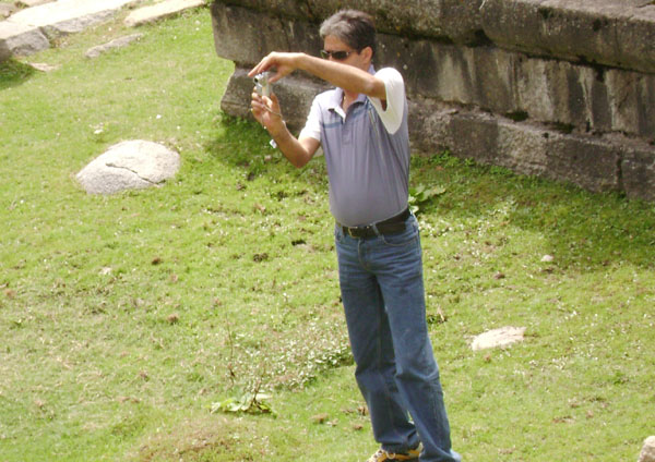 | Author, Chander M Bhat in the lawns of Naran Nag trying to collect the scattered pieces of history. Done against all odds. |