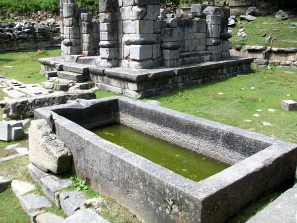 | Bath tub made of a single stone reminds us of it also being used as a vihar by purohits |