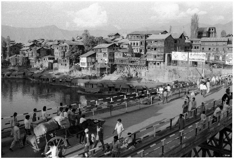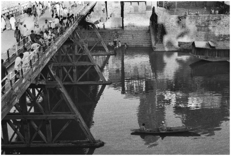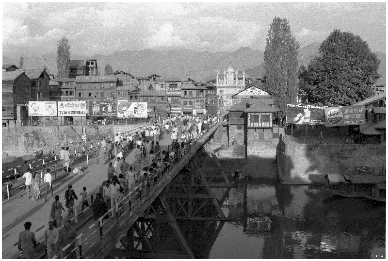 The bustling life at Habba-Kadal on a late sunny afternoon in 1985. The shadow of Purshyar side touching the Ghat of Somyar Mandir. But the upcoming calamity hat yet to throw its bloody shadow on the area! |