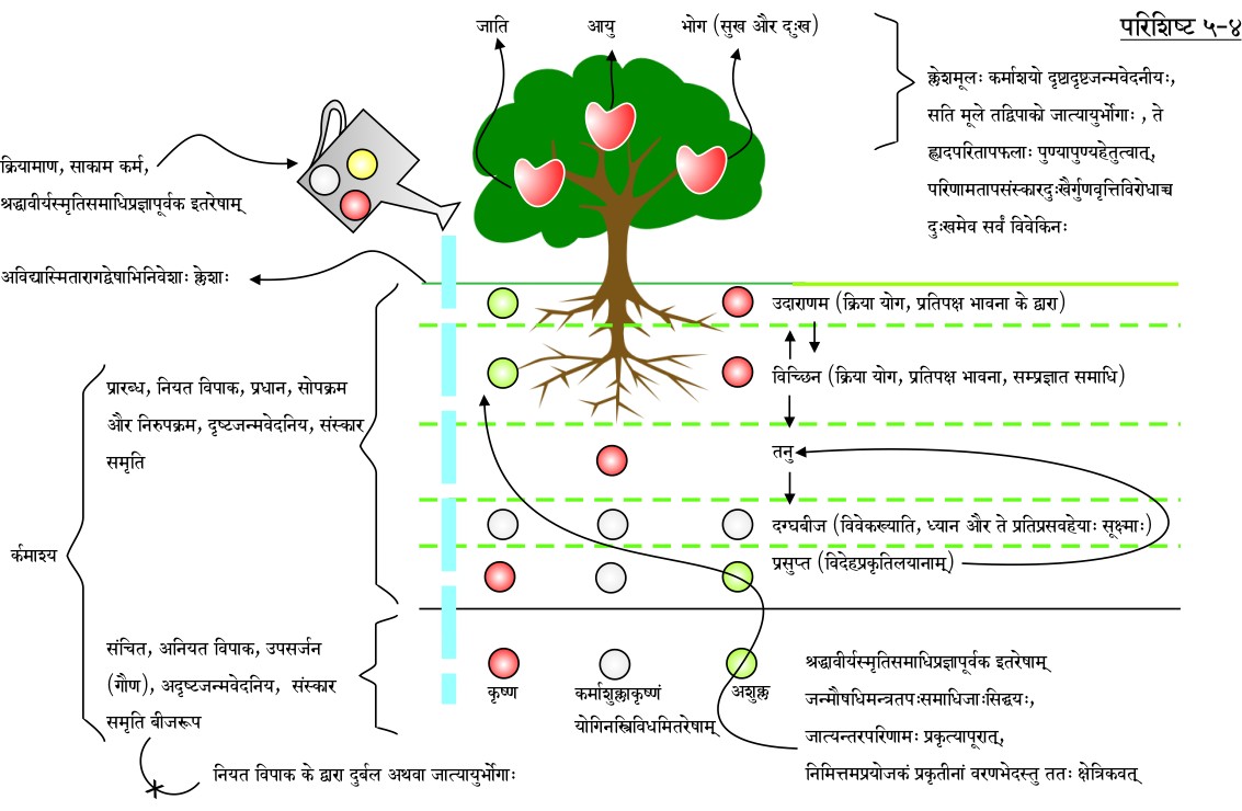Accumulated karma in the latent form is called Samskara, which is the subtle base of our manifested desires (Vasanas). Samskara further gets strengthened by wrong-knowledge (Avidya), and because of ignorance one starts considering –
