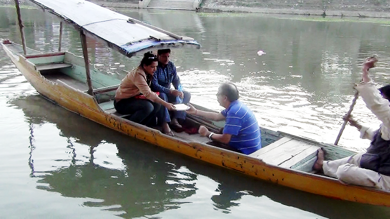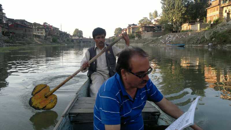 accross the world. A boat ferried at the Ganpatyar -yarbal. Smt Vrushali Kaul, Dr Agnishekhar ji recited mantras and performed pooja and I and Vrishaliji offered floral tributes and sweets to the holi river while Rahul Kaul, Vithal Chowdhari and Bhushan Lal ji attended the pooja from across the River Bank. A historic feat in terms of innovative observance of this year's "Vitasta Diwas''. |